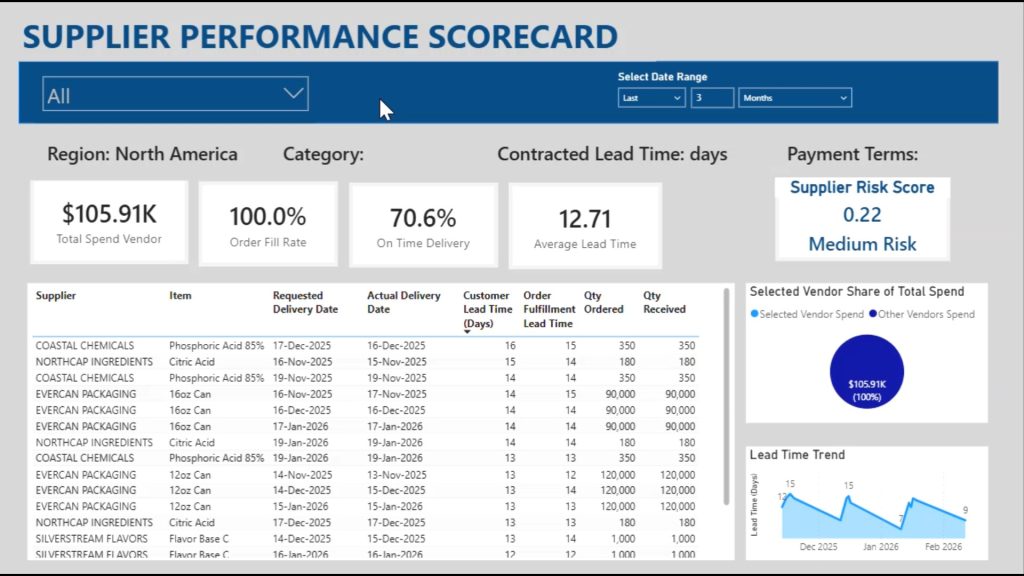 Transform transactional ERP data into an integrated vendor performance dashboard.